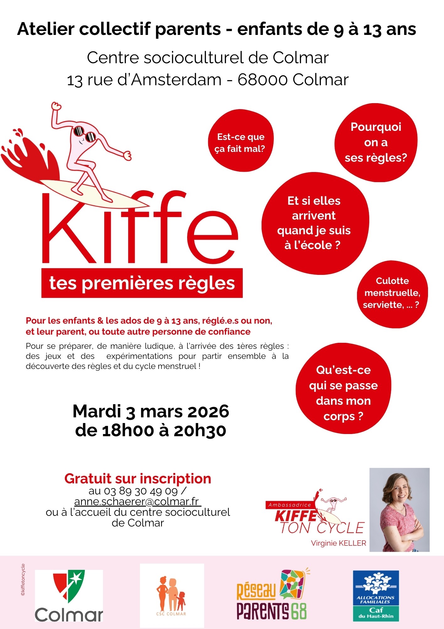Atelier réservé aux jeunes filles à partir de 9 ans accompagnées par un parent.