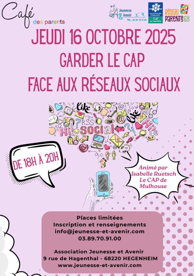 Dans un monde où les réseaux sociaux prennent de plus en plus de place dans la vie de nos enfants, il n’est pas toujours facile de savoir comment les accompagner. C’est pourquoi nous vous proposons une soirée d’échanges animées par Isabelle Ruetsch (La CAP – Mulhouse).