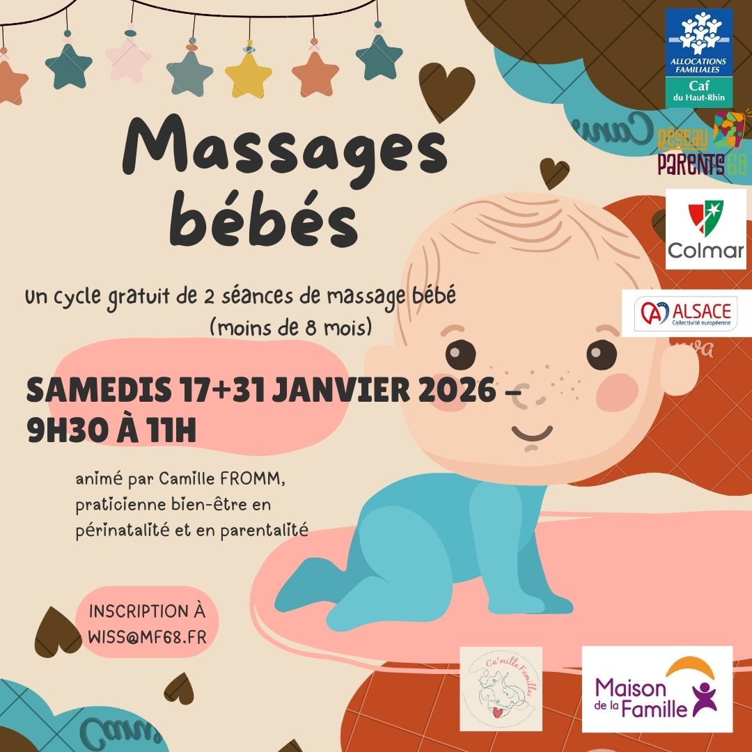 Venez partager un moment de complicité et de douceur avec votre bébé autour d’un cycle de 2 séances de massages proposé par Camille FROMM, accompagnante en périnatalité.