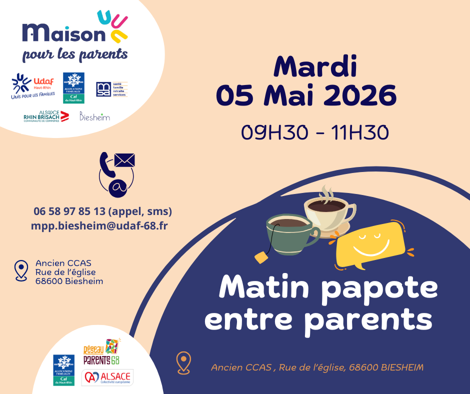 Les Matins Papote : un moment pour discuter, partager, poser des questions, ou juste de prendre un café entre parents. Les enfants sont les bienvenus !