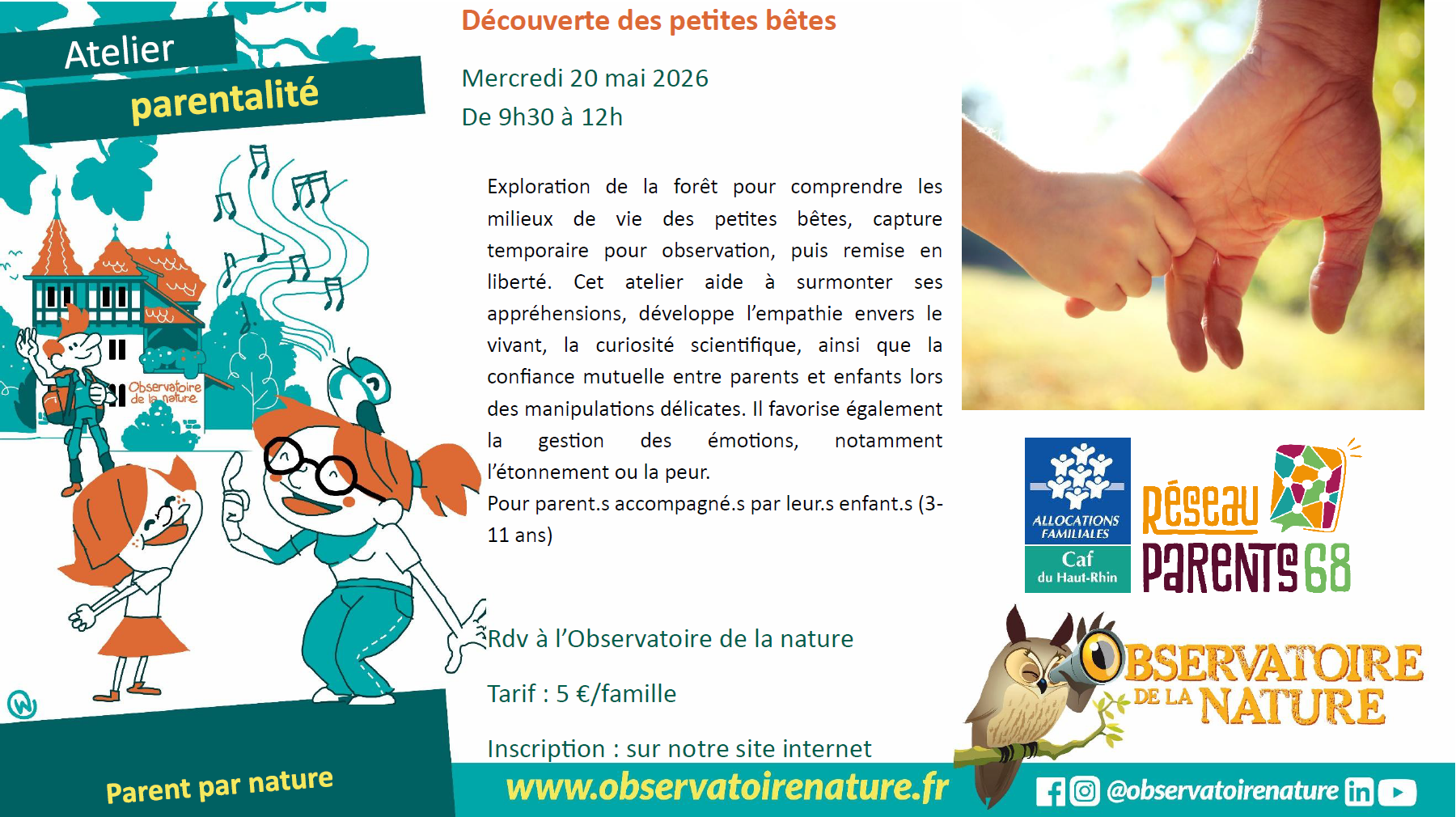 Exploration de la forêt pour comprendre les milieux de vie des petites bêtes, capture temporaire pour observation, puis remise en liberté. Cet atelier aide à surmonter ses appréhensions, développe l’empathie envers le vivant, la curiosité scientifique, ainsi que la confiance mutuelle entre parents et enfants lors des manipulations délicates. Il favorise également la gestion des émotions, notamment l’étonnement ou la peur.