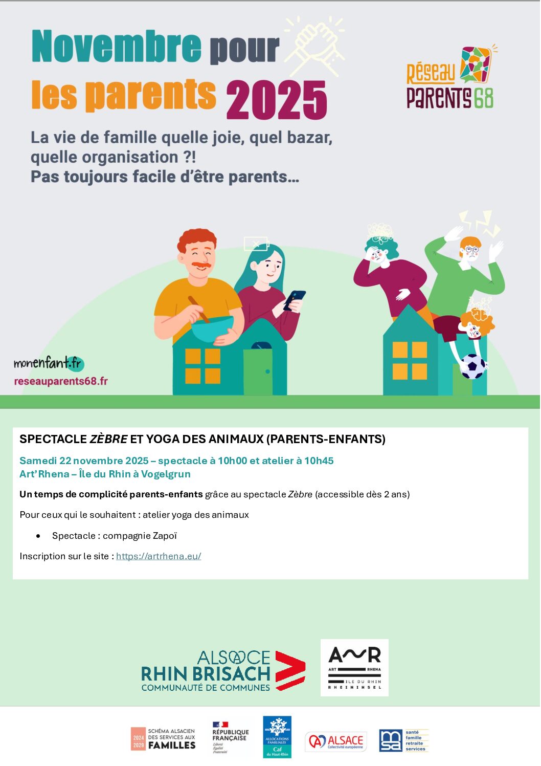 Un temps de complicité parents-enfants grâce au spectacle Zèbre (accessible dès 2 ans), suivi d’un atelier yoga des animaux à partager en famille.
